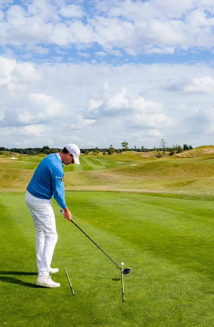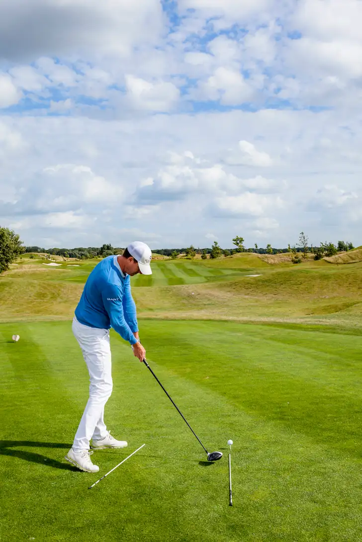 Ga van de tee in principe voor je natuurlijke balvlucht, want daar heb je het meeste vertrouwen in, maar als een hole echt om een draw of fade vraagt, sla je die als volgt.