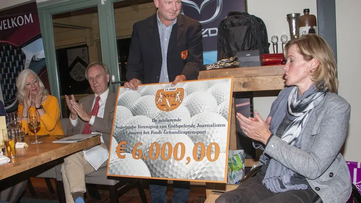 NVGJ vice-voorzitter Martijn Paehlig: 'Toen zich de gelegenheid voordeed ons jubileumjaar met een mooi gebaar af te sluiten kwamen we, via de Nederlandse Golf Federatie, al snel bij het Fonds Gehandicaptensport uit. Mede dankzij hun inspanning heeft het Fonds sinds enige tijd een aparte 'golfafdeling' in de vorm van het Sportfonds Golf en het doet ons uitermate veel plezier daar op deze manier ons steentje aan bij te kunnen dragen.'