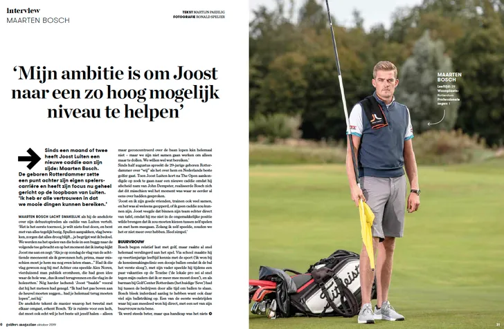 Maarten Bosch zette een punt achter zijn professionele carrière en besloot caddie te worden van Joost Luiten. We spraken met hem over ambities, de noodzaak van eerlijk zijn en de gevaren van een vriend op de tas.