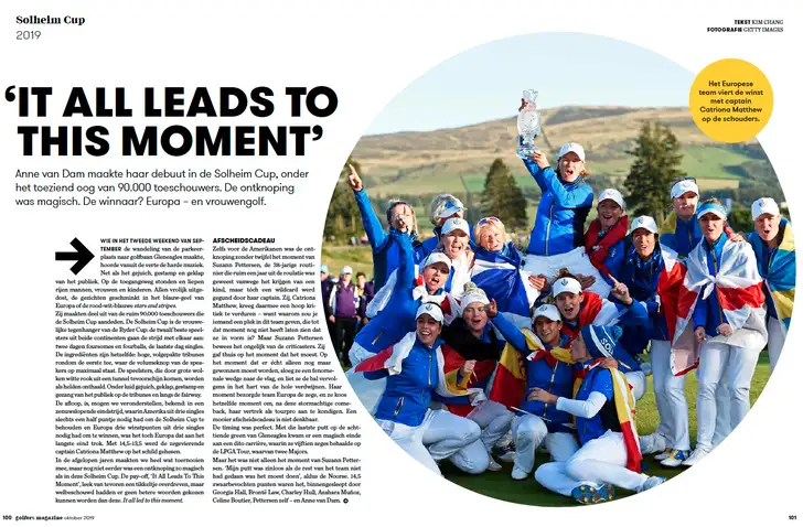 Het werd op Gleneagles het mooiste golffeestje van het jaar en wij waren erbij. Anne van Dam speelde de Solheim Cup en de winnaar werd het vrouwengolf.