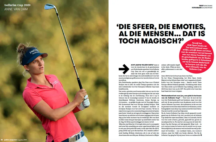Ook spraken we met Anne van Dam over de Solheim Cup, want acht jaar na Christel Boeljon staat er eindelijk weer een een Nederlandse in het Europese Team. 'Het betekent heel veel voor me.'