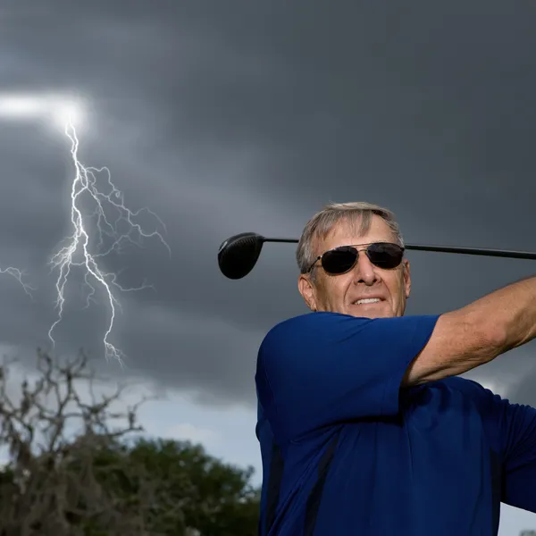Onweer is levensgevaarlijk als je op de golfbaan bent. Flitsen en een klap in de buurt? Laat je spullen staan en zoek direct een schuilhut op.