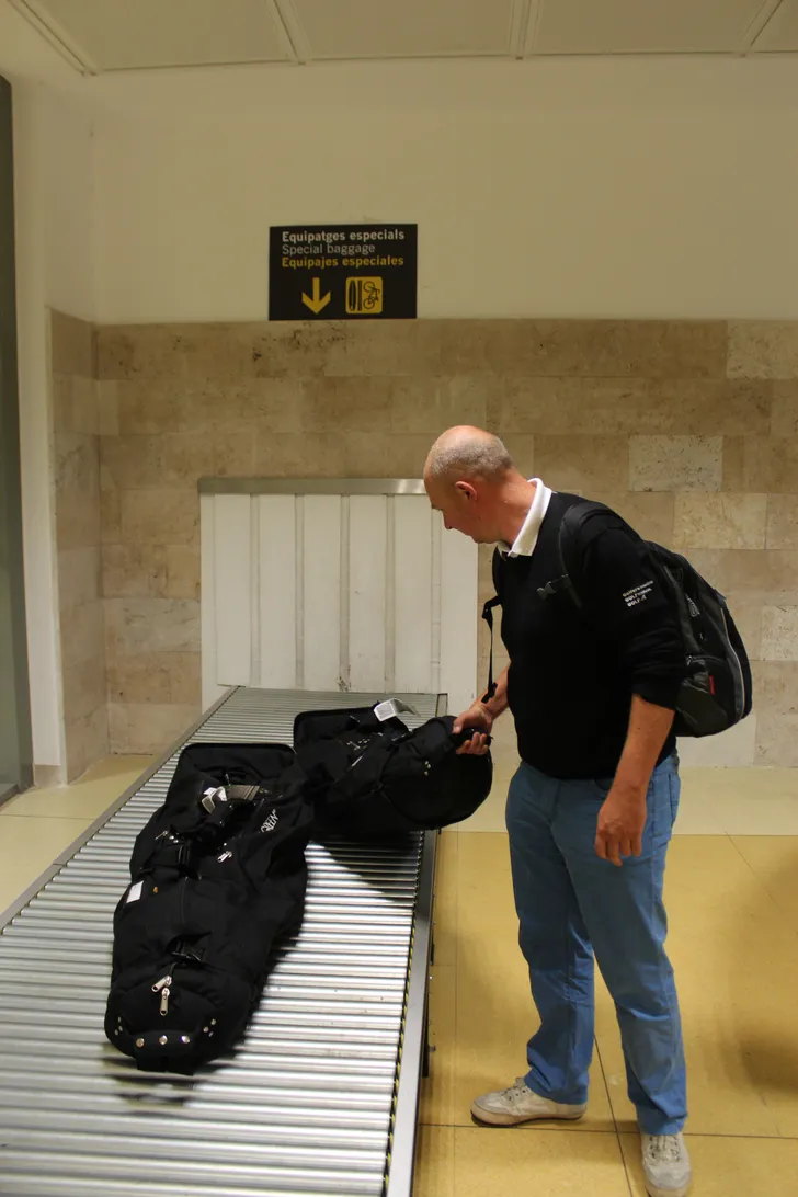 Voor die paar schone sokken en onderbroeken hebben we alleen handbagage nodig, maar we namen wel onze eigen clubs mee. Wie écht makkelijk wil reizen neemt alleen een rugtasje met het hoogstnoodzakelijke mee en laat de clubs thuis. Een volle set huren kost op PGA Catalunya € 50,- voor een weekend, net zo veel als een retourtje voor de clubs bij de luchtvaartmaatschappij waar wij mee vliegen.
