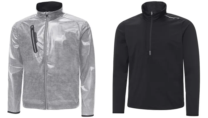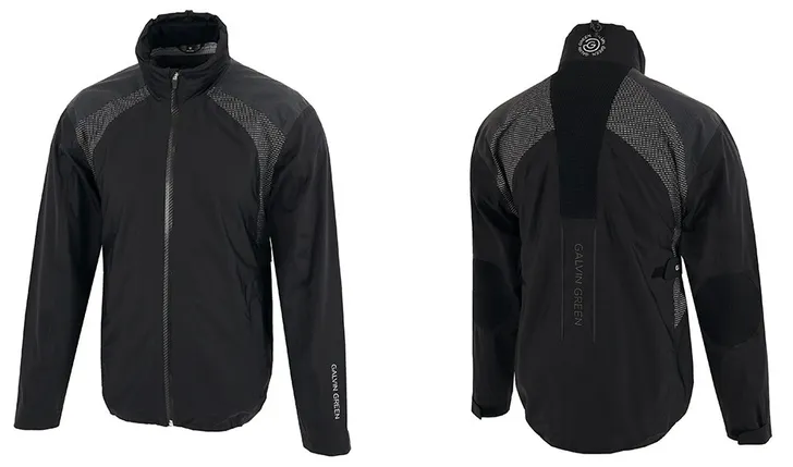 Naast het waterdichte Gore-Tex regenpak, omvat de nieuwe lijn ook twee jacks die onder de noemer Interface-1 vallen: de zilveren Lloyd (€ 350,-) en zwarte Lancelot (€ 250,-) zijn waterafstotend, winddicht en warm, waardoor ze volgens Galvin Green in 95 van de 100 rondjes gedragen kunnen worden.