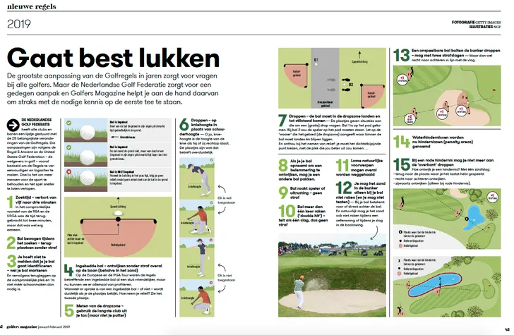 En we hebben deze winter nog een klein beetje huiswerk voor je. We hebben alle regelveranderingen nog een keer op een rij gezet, zodat je in 2019 precies weet wat je moet doen. Komt goed... als je Golfers Magazine tenminste leest.