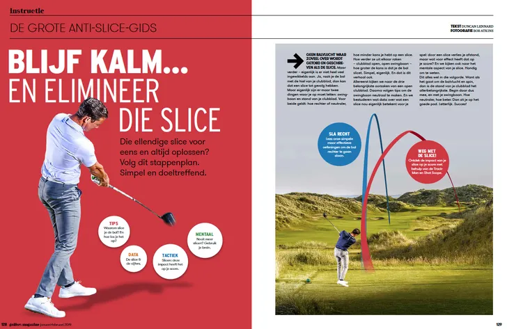 Ook lossen we voor eens en altijd hét golfprobleem van veel amateurs op: de slice. We hebben er twaalf pagina's voor uitgetrokken en dat moet genoeg zijn. In 2019 slaan we allemaal een draw.