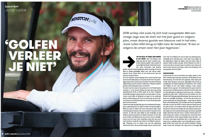 In het laatste nummer spreken we ook met Joost Luiten. Hij kijkt terug op een frustrerend 2018 maar vooral vooruit op 2019. 'Ik kan er volgens de artsen weer tien jaar tegenaan', klinkt het opgelucht.