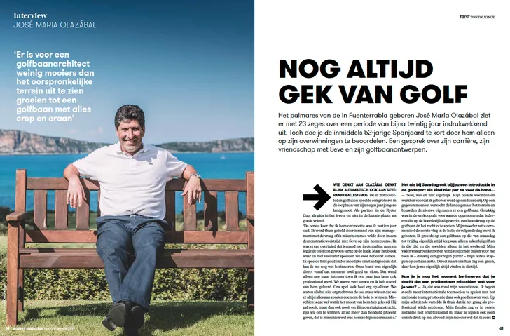 José Maria Olazábal won 23 keer op de Europese Tour. We spraken met de sympathieke Spanjaard over zijn indrukwekkende carrière, de vriendschap met Seve en de voldoening de hij krijgt van golfbanen ontwerpen.