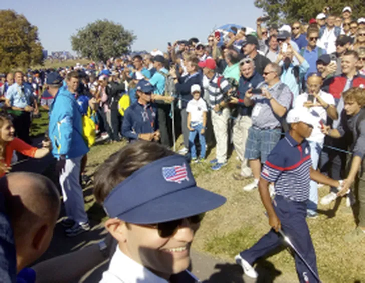 Vandaag, donderdag, werd het een compleet gekkenhuis op en rond de baan. De Amerikanen starten op hole 1 om 10:30 en de Europeanen op hole 10. Je kon op de holes 1 t/m 9 voornamelijk U-S-A horen en op 10 – 18 Olé Olé Olé Olééé.