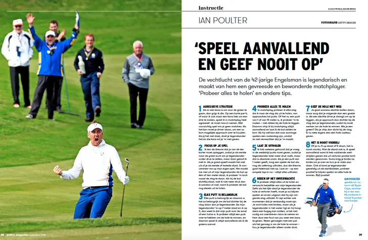 Hij had er een wildcard voor nodig, maar gelukkig is Ian Pouler weer van de partij – voor de zesde keer. De 42-jarige Engelsman verloor nog nooit een single in de Ryder Cup verloor en deelt zijn beste matchplaytips.