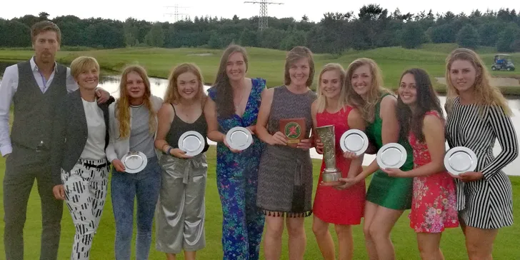 Zo moest de beslissing komen in de partij van Zoey van Vliet tegen Leonie Warringa. De Noordwijkse ging met een minimale voorsprong naar de laatste hole. ,,Daar speelde Zoey het heel koel. Leonie Warringa miste de par en daarmee was de titel voor ons binnen. Drie partijen die tot achttien gingen, en alle drie winnen we ze. Ongelooflijk.’’