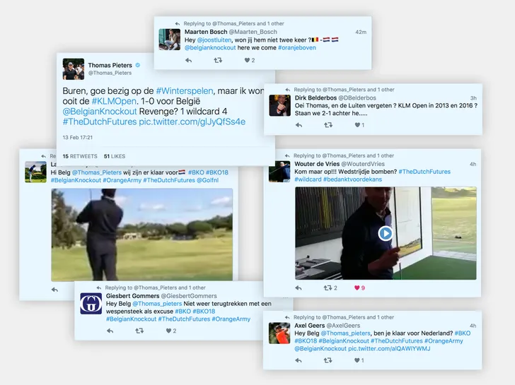 Dat ontketende een heuse 'friendly' Twitter beef, waarbij Nederlandse golfpro’s reageerde met filmpjes waarbij ze lieten merken de uitdaging maar graag aan te gaan (klik op de afbeelding hieronder).