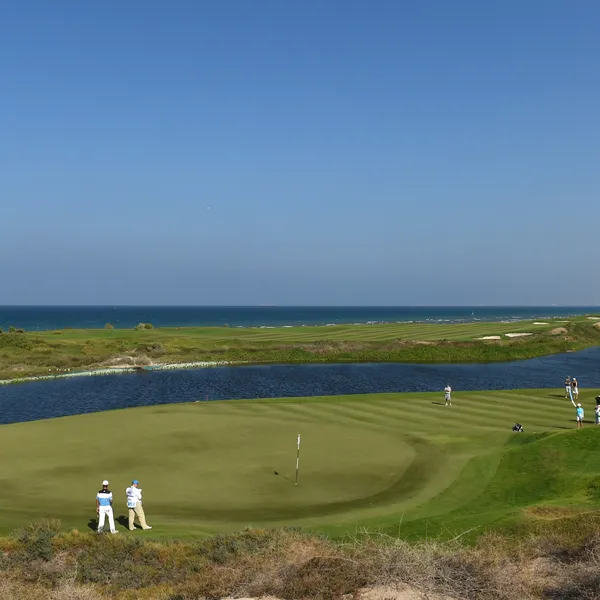 Bijzonderheden: Welkom in Oman, vrienden van de prachtige golfsport. Dit jaar hebben we niet één, maar twee Desert Swings, al is er deze week van de woestijn niet veel te zien. Al Mouj wordt in het noorden begrensd door de Golf van Oman (aan de andere kant ligt Iran – niet bepaald een vriend maar wel een handelspartner van Oman) en in het zuiden door het internationale vliegveld. De holes van de eerste negen liggen in het verlengde van de start- en landingsbaan.