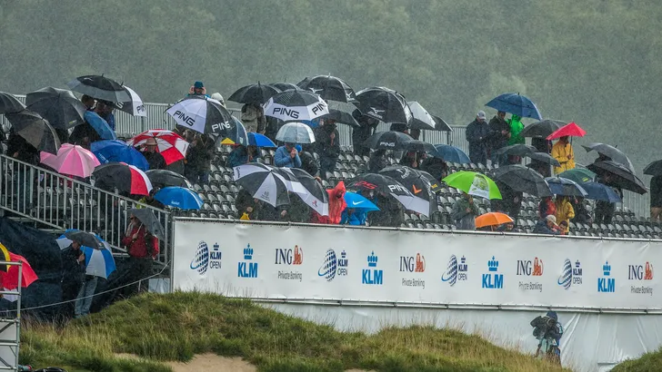 Het spel in de eerste ronde wordt vrijdagochtend om 08.00 hervat en het is de bedoeling om het hele weekend in drieballen te spelen waardoor het toernooi gewoon over 72 holes gespeeld zal worden.