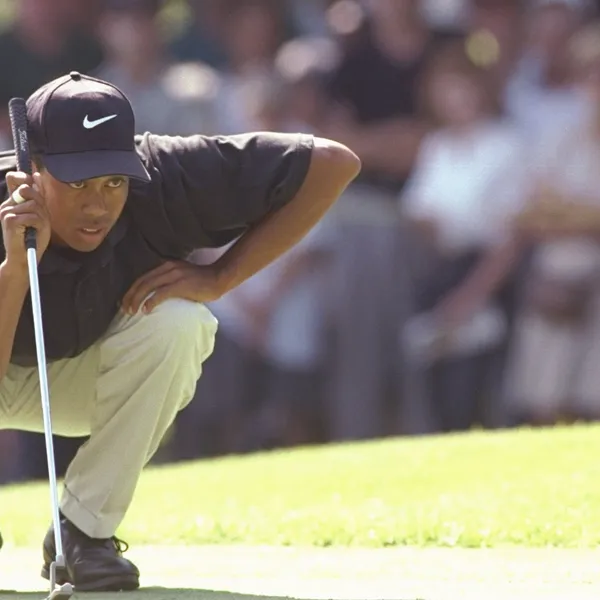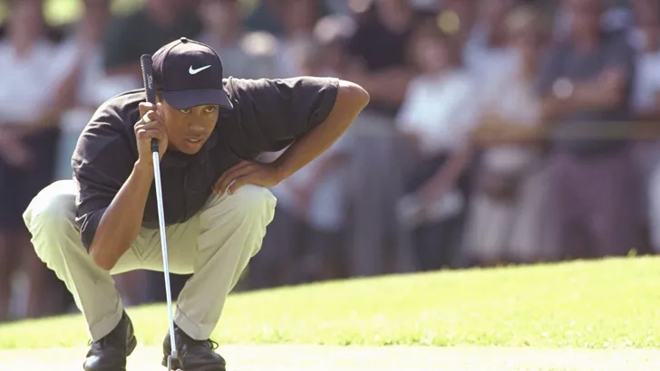 Foto boven: Woods tijdens de eerste ronde van het Greater Milwaukee Open 1996 (Getty Images)