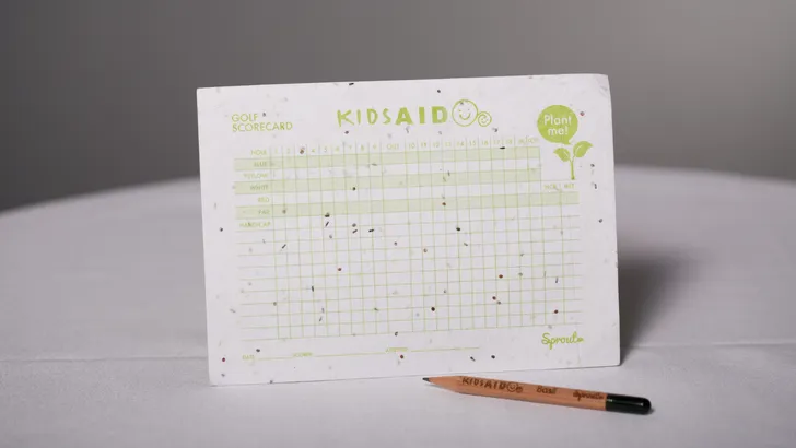 In een poging om miljoenen scorekaarten en potloden uit de vuilnisbak te redden, hebben ze er zaden in verwerkt, zodat ze na gebruik kunnen worden gepland en er bloemen en kruiden uit groeien.