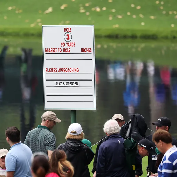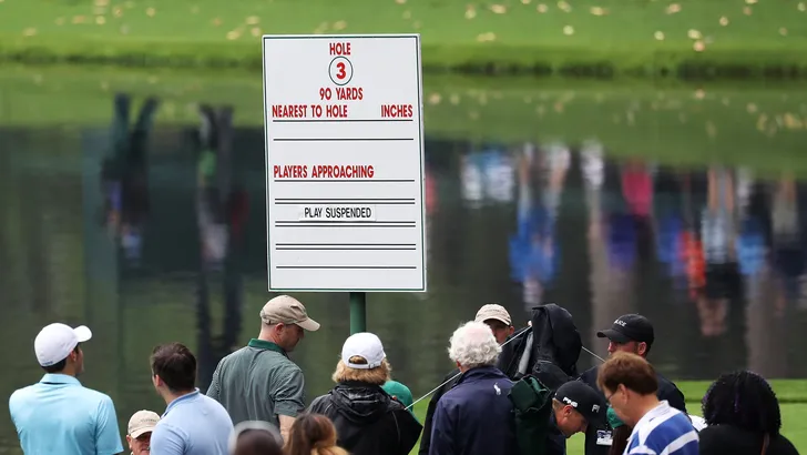 Het slechte weer heeft in Augusta National een eerste slachtoffer geeist: voor het eerst in ruim een halve eeuw kon de par-3 contest niet worden gespeeld.