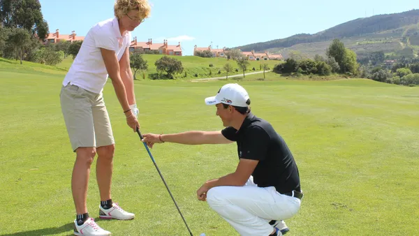 Aan drie kanten, zouden we willen zeggen. Want naast het feit dat de pro's trainen – en de deelnemers daar wat van opsteken – is Dolce Campo Real natuurlijk ook 'gewoon' een mooie zonnige bestemming. Op iets meer dan een half uur ten noorden van Lissabon ligt het kleinschalige resort ingeklemd tussen het Archeira-gebergte. Tientallen windmolens staan langs de bergflanken windenergie op te wekken, terwijl je zelf op de in 2005 geopende baan ook best wat extra energie kunt gebruiken. Het ontwerp is gerust heuvelachtig te noemen, en een buggy is helemaal geen gek idee. Wie daar niet op zit te wachten – als het even kan lopen wij liever – doet er evenwel verstandig aan de aangeboden lift na hole twee, wél aan te nemen. Wij zagen het nog niet eerder, maar de klim naar de tee van drie is dermate steil en lang dat een groot deel van het seizoen een transfer klaar staat. 'Er zijn wel mensen die ons aanbod afslaan, maar meestal alleen op de eerste dag', lacht de chauffeur van dienst voor hij onze tas op de aanhanger sjort en de buggy in beweging zet.