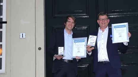 Foto boven: Jelle Vleugel en Peter van Duivenvoorde zijn in hun nopjes met de prijs (foto Andy Baker)