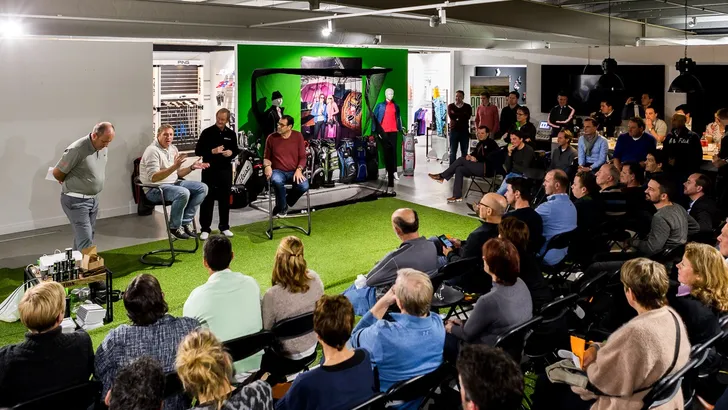 Ruim 120 mensen waren afgekomen op de avond in de grote winkel van Golfcenter.nl in Amersfoort en zij kregen een vol programma voorgeschoteld. Er was ruimte voor instructie, een stukje geschiedenis, wat techniek, er was een trickshow, een fysiotherapeut vertelde wat over het belang van een fit lichaam, er waren specialisten uit de reisbranche, radiopresentator Rob van Someren deed enthousiast uit de doeken waarom hij gegrepen werd door de sport, en dankzij verschillende sponsors werden diverse prijzen verloot, en door de goed gevulde goodiebags ging niemand met lege handen naar huis.