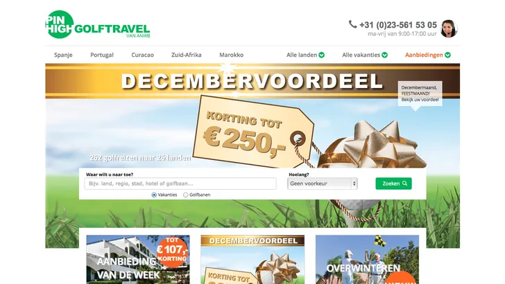 Matthijs Hermsen, manager sales & marketing Pin High: “De kortingen lopen op tot wel € 250,- per persoon. Het gaat vooral om golfreizen die zeer interessant zijn om nog in december te boeken, omdat het voordeel snel afloopt. Boek uw golfreis dus tijdens deze feestmaand om in aanmerking te komen voor feestelijk veel voordeel!”