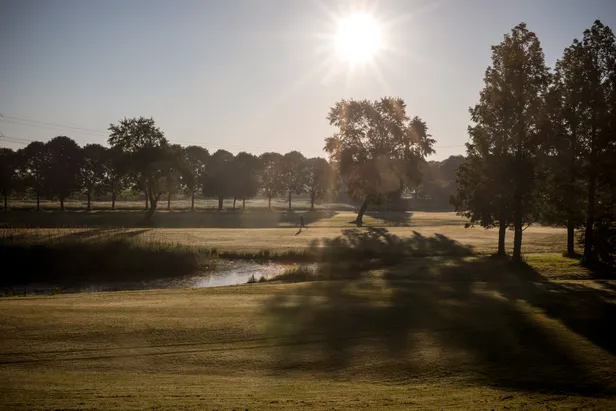 Daar moest ik maar niet aan meedoen, bedenk ik twee holes later als ik – recht tegen de opkomende zon in spelend ‒ een bal kwijtraak pal naast de fairway (dubbel bogey). Een hole later leg ik lafjes op uit vrees de sloot vlak voor de green van de par-3 dertiende niet te gaan halen bij mijn derde slag. De par-4 veertiende is daarentegen weer heel goed voor het gemoed. Waar ik tijdens een normale ronde nog wel eens met een driver en te grote ambities op deze tee sta, haal ik met twee rustige klappen de green om twee putts later met een easy par van de green te lopen.