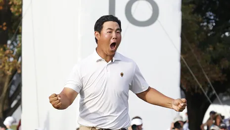 De hoofdrol was echter weggelegd voor Tom Kim. Met zijn geweldige spel en aanstekelijke enthousiasme is de 20-jarige Zuid-Koreaan een publiekslieveling geworden. Hij meldt zich met een grote glimlach op de eerste tee en spoort het Amerikaanse publiek aan om zo veel mogelijk lawaai te maken. Daar maak je vrienden mee. 'Ik probeer het team energie te geven', aldus de rookie. 'Dat is het minste wat ik kan doen.'