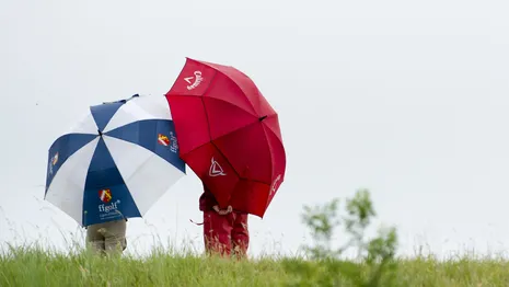 Ook Joost Luiten was niet opgewassen tegen de elementen. Ook hij ging na de turn hard onderuit: drie double bogeys en een bogey. Met een 79 kwam Luiten op vijf boven uit.