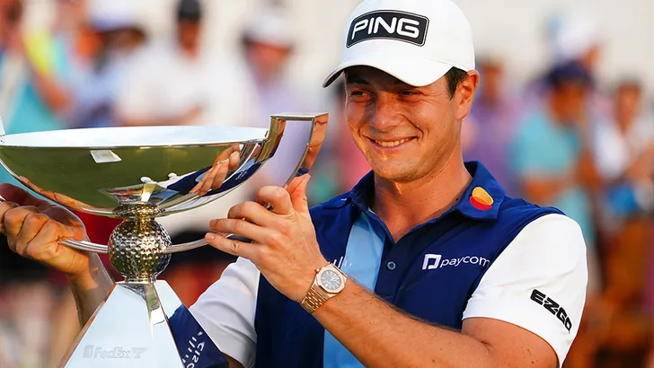 'Cha-ching' grapte Viktor Hovland iets meer dan een jaar geleden toen hij na het winnen van de Dubai Desert Classic een cheque van 1,3 miljoen dollar in zijn handen gedrukt kreeg. Dat bedrag is niet meer dan een fooi in vergelijking met het prijzengeld dat de 25-jarige Noor de afgelopen twee weken bij elkaar speelde.