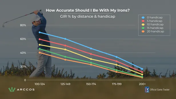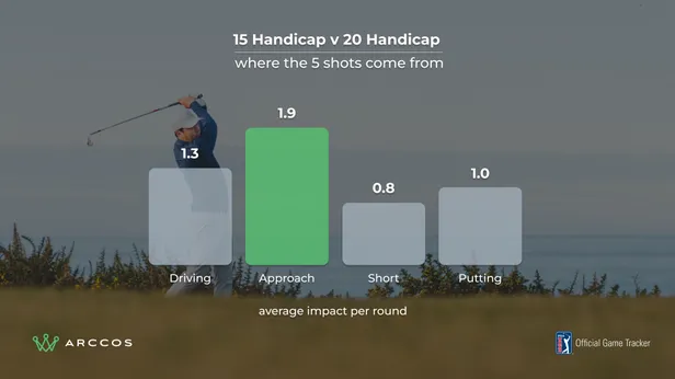 Spelers met handicap 15-20 slaan hun ijzers tussen de 6,4 en 8,9 meter verder dan degenen met handicap 20-25. Dat is een belangrijke reden waarom een 15-handicapper op het gebied van approaches per ronde gemiddeld 1,9 slagen wint ten opzichte van een speler met handicap 20.