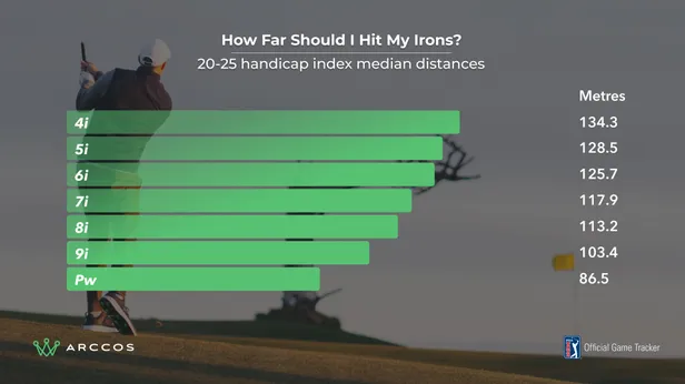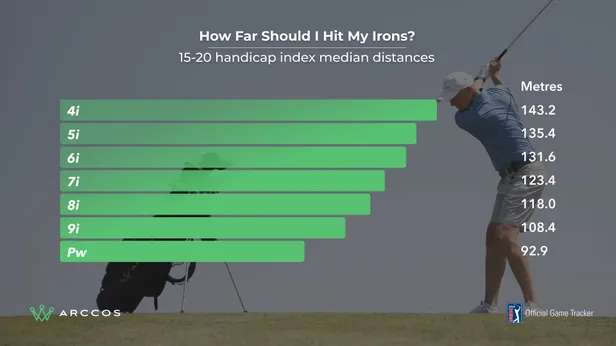 Met je ijzers is consistentie veel belangrijker dan lengte. Greens slaan en vlaggen aanvallen wordt immers lastig als de bal de ene keer veel verder vliegt dan de andere keer. Waarom dan toch deze gemiddelde afstanden per handicap? Omdat een ijzer-9 naar de vlag slaan veel eenvoudiger is dan een ijzer-7. Als je lengtes beduidend korter zijn dan in deze statistieken, loont het wellicht de moeite om op zoek te gaan naar een afstandsijzer.
