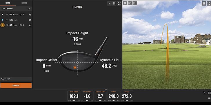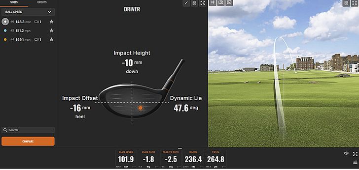 • Het pad van het clubhoofd (club path) was ook bijna identiek: 1,8º versus 1,6º naar links.
