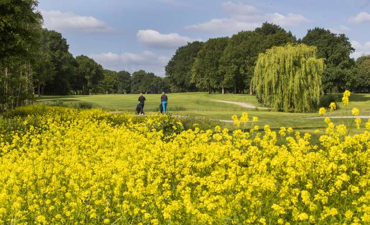 Echt aan een polder moeten we gedurende de ronde dus niet denken. Alleen op hole 3, 4 en 5 zien we links van ons de ruimtelijkheid die we daarmee associëren. In ruim veertig jaar tijd hebben de tienduizenden aangeplante bomen en struiken goed wortel geschoten, waardoor je je op het grootste deel van de baan meer in een park dan in een polder waant. Maar getuige de grote hoeveelheid jonge aanplant was het kennelijk nog niet genoeg. Alleen al links van de fairway van de par 5 1ste telden we 25 nieuwe bomen.