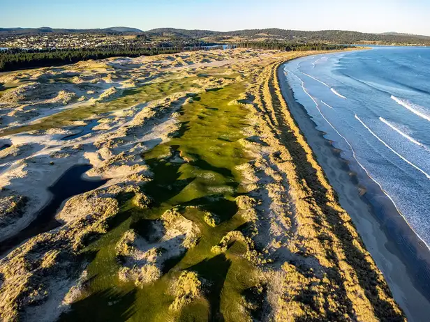 Het verhaal achter Seven Mile Beach, de baan aan de kust van Tasmanië is al net zo mooi als de foto's. Mede-ontwerper Mike Clayton vertelt: