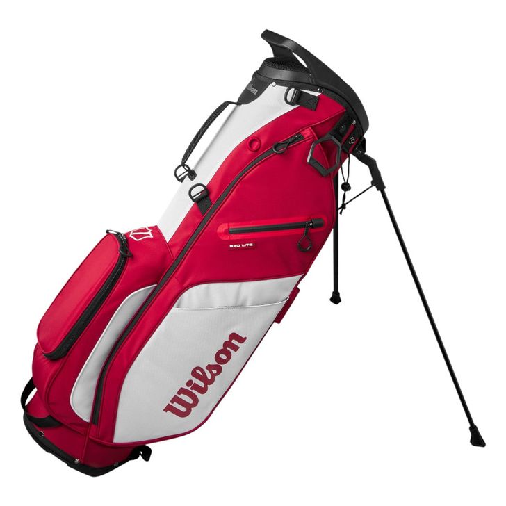 De Exo Lite is een simpele, no-nonsense draagtas van robuust materiaal. Hij weegt slechts 1,8 kilo en is uitgerust met vier vakken voor je clubs en zes voor andere spullen, waaronder een waterdicht vak voor je waardevolle spullen, een magnetisch sluitend vak voor je rangefinder en een koelvak. Verkrijgbaar in zes verschillende kleuren. Prijs: € 199