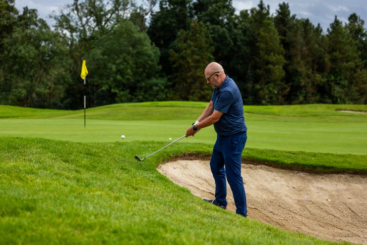 Nee, we scoren geen punten als groep. Op de vraag met welke club we vanaf deze plek naar de green zouden spelen, kwamen volgens Thomas nagenoeg alleen maar foute antwoorden. Het antwoord ‘putter’ kan nog net zijn goedkeuring wegdragen, maar de vooral genoemde gap, sand en lob wedge kunnen dat niet. Lachend: 'Daarvoor zijn we echt niet goed genoeg, hoor. Het gaat er bij dit soort schoten vooral om het risico zo klein mogelijk te maken. De kans dat je die lob wedge over de green topt is levensgroot, terwijl je, als je de bal naar de vlag laat rollen, vrijwel zeker dichter bij de pin eindigt.' Thomas legt het nog eens uit voor hij ons aan het werk zet. Allemaal moeten we vijf ballen met een ijzer 9 of 8 naar een van de vlaggen op de hoger gelegen green spelen. 'Hoeveel van de ballen hebben de green gemist?', vraagt hij na afloop. Eentje maar, zo blijkt. 'Doe dat nu maar eens met een lob wedge.' Hoewel nog altijd veel ballen op de green eindigen, moeten we bij het rapen na afloop tot wel twintig meter achter de green zoeken om de ballenbuis weer te vullen. 'Dat bedoel ik', zegt de pro van de Waterland Golf Academy als hij zijn stelling bewezen ziet. 'Het kan best leuk zijn, hoor, zo'n bal met een mooi boogje. Maar als je wilt scoren zou ik er, als er geen noodzaak toe is, zeker niet aan beginnen.'