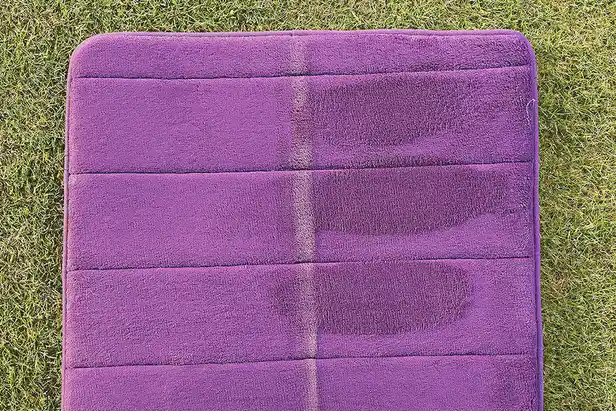 2. Als je jouw invalshoek wilt begrijpen en diagnosticeren, dan is een badmat een effectief trainingsmiddel. Zoek er een met wat structuur – velours werkt prima – waarbij je een afdruk achterlaat als je over het oppervlak gaat. Trek met krijt een lijn over het midden van de mat en leg 'm vervolgens loodrecht op het doel. Leg een aantal ballen op de lijn en sla simpelweg een aantal chips richting het doel.