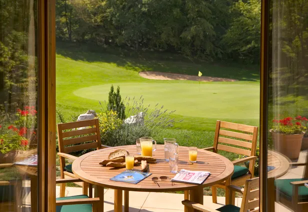 Maar eerst moet er natuurlijk gegolft worden. Alleen, of met het gezin. Een verblijf in een van de fraaie, compleet ingerichte houten villa's op het park is niet compleet zonder een paar rondjes over de vriendelijke baan. Wie denkt een championshipcourse aan te treffen, komt bedrogen uit. Met een par van 67, en een lengte van 4300 meter van de backtees (!) voldoet de baan bij lange niet aan die kwalificatie. De langste hole – de par-5 vierde – meet vanaf geel nog 433 meter, maar verder is geen enkele hole langer dan 360 meter. Vanaf rood is de totale lengte van de baan zelfs maar net iets meer dan 3500 meter.