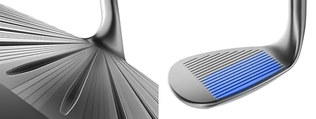 Net zoals het progressieve zwaartepunt, hebben de nieuwe wedges drie verschillende groefvormen gebaseerd op de loft van de wedge. Lob wedges (58-60) hebben bredere en ondiepere groeven die het vuil beter wegwerken rond de green en bij halve slagen. Daarentegen hebben pitching en gap wedges (44-52) smallere en diepere groeven voor een beter resultaat bij volle slagen. Het profiel van de groeven bij lofts tussen de 54-56 graden zit daar precies tussen.