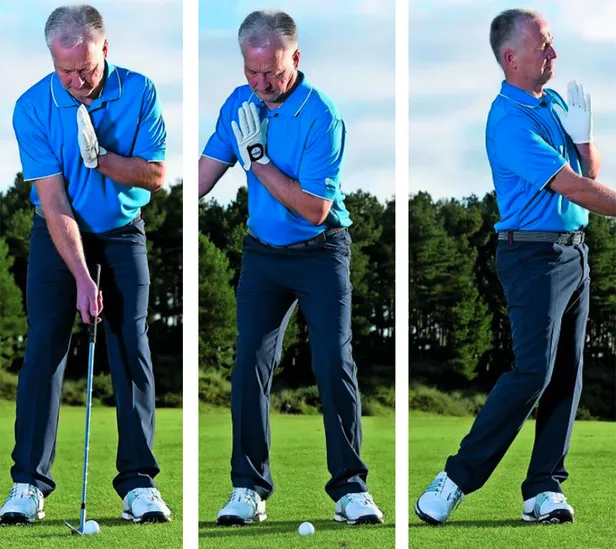 De data laten zien dat je van dichterbij meer kans op succes hebt, maar werken aan je halve slagen zal de resultaten nog verder verbeteren. Het grootste probleem voor clubgolfers is hun armen en lichaam in één gecoördineerde beweging gebruiken. Deze oefening helpt je daarbij. Doe het eerste zonder bal en langzaam. Ga vervolgens naar je normale snelheid en sla tot slot de bal.