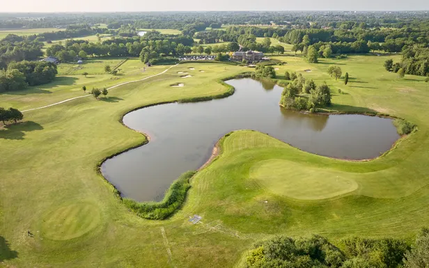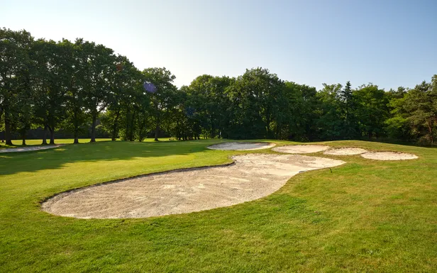 De beek op hole 3 is niet de enige waterhindernis op de baan die, zeker op de eerste negen, flink breed is. Hole 5, 6 en 7 liggen rond een meertje, en vooral spelers met een balvlucht van links naar rechts moeten hun best doen om het droog te houden. Zet wat meer op links op – daar is de ruimte ook – en maak, indien je er een slag mee krijgt, gebruik van je handicap.