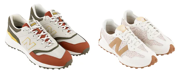 De 327 Golf SL combineert klassieke trainingsschoenstijl met golfprestaties. De lichte EVA-tussenzool biedt demping en geeft volop feedback, terwijl de noppen aan de buitenzool grip en stabiliteit garanderen. Verkrijgbaar in vier nieuwe kleurcombinaties, waaronder Wit/Bruin en Sesame.